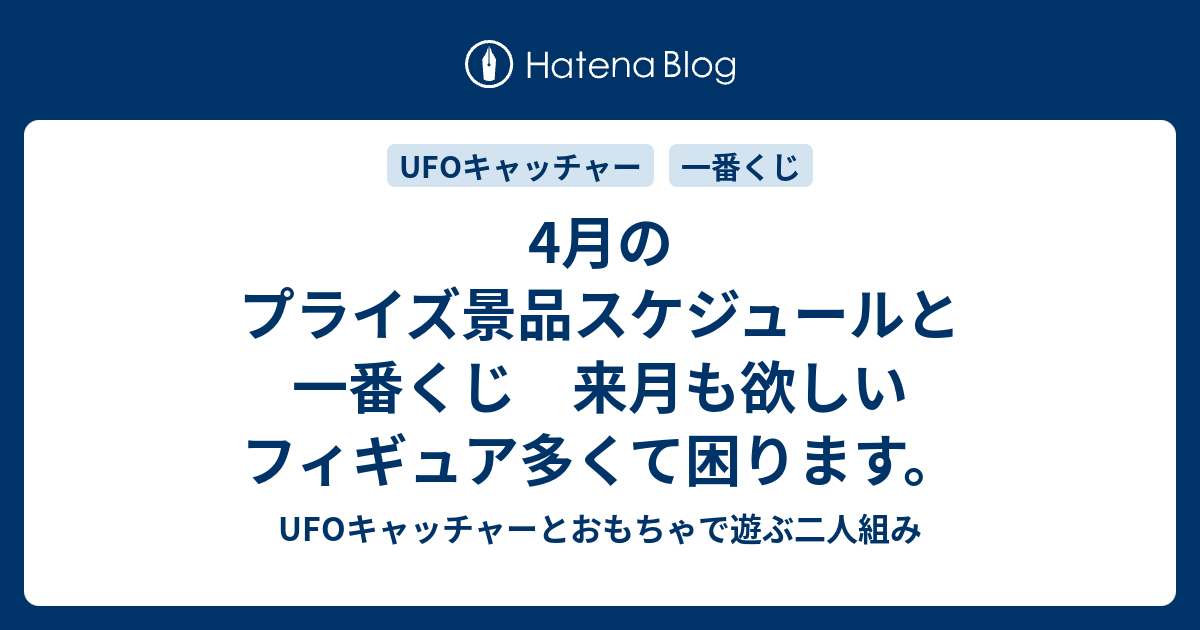 4月のプライズ景品スケジュールと一番くじ 来月も欲しいフィギュア多くて困ります Ufoキャッチャーとおもちゃで遊ぶ二人組み